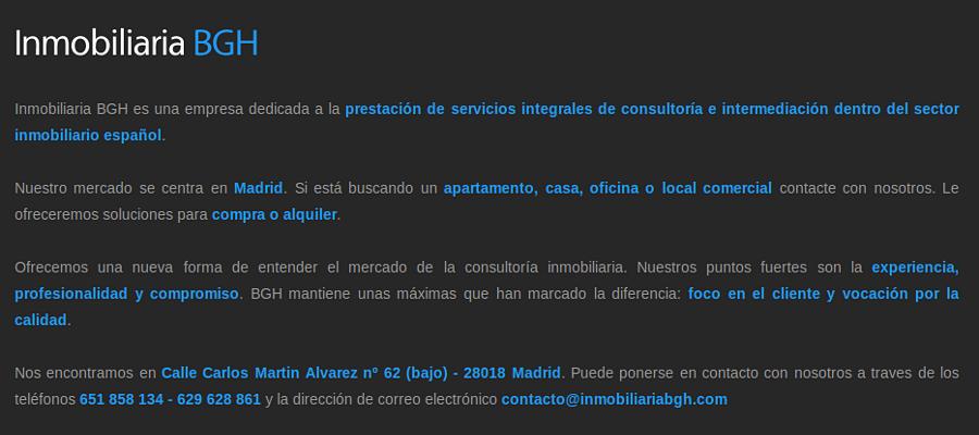 Web de una pequeña empresa dedicada a la gestión inmobiliaria en Madrid (España)| Url | www.inmobiliariabgh.com |