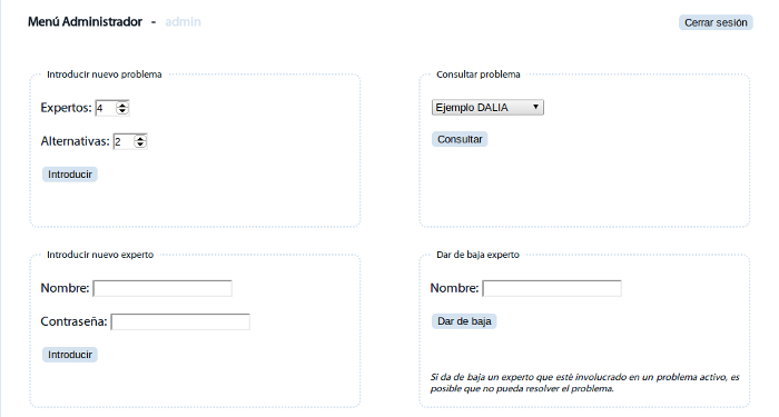Plataforma versátil para la toma de desiciones en conjunto. DALIA es una herramienta cuyo objetivo es ayudar a la toma de desiciones basadas en el concenso de varios expertos.Basada en algortimos matemáticos de cálculos de distancias, DALIA proporciona los formularios necesarios para que varios expertos procedan a analizar en pares 2 a 2 a una serie de alternativas sobre un problema.