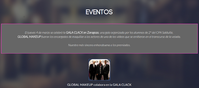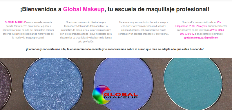 Web para una escuela de maquillaje profesional en Zaragoza (España)| Url | www.globalmakeup.es |