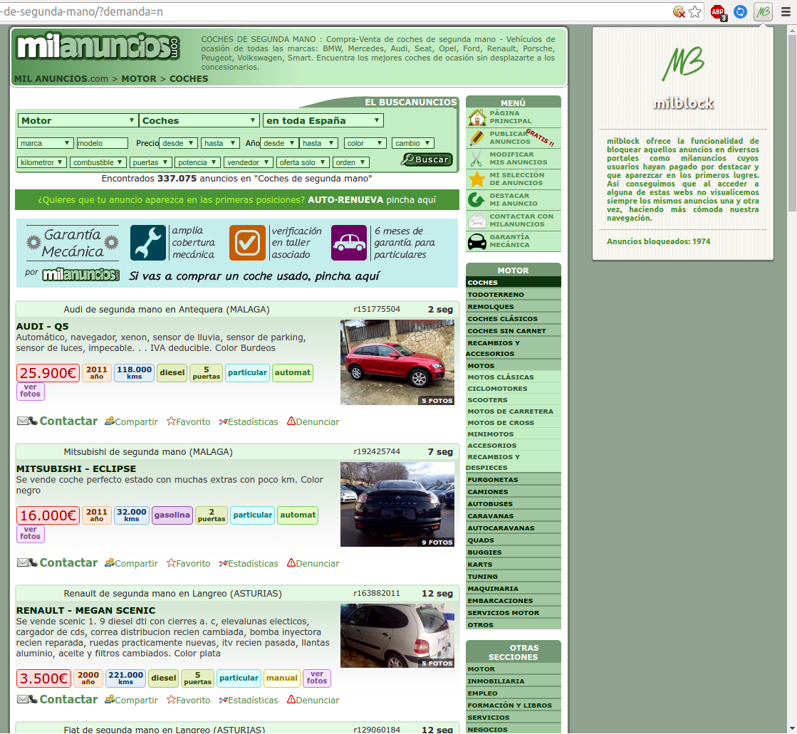 En milanuncios, si una pantalla contiene solo anuncios destacados, algo que ocurre con frecuencia en las primeras páginas de secciones como coches o pisos, la extensión pasará automáticamente a la siguiente.