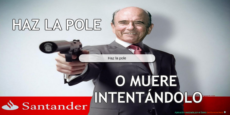 Aplicación web para realizar poles en el subforo general de www.forocoches.com. Al hacer click en el botón "Haz la pole", la web busca el hilo más actual sin respuestas en el foro y redirige el navegador del usuario al mismo.| Versión | v1.3 |