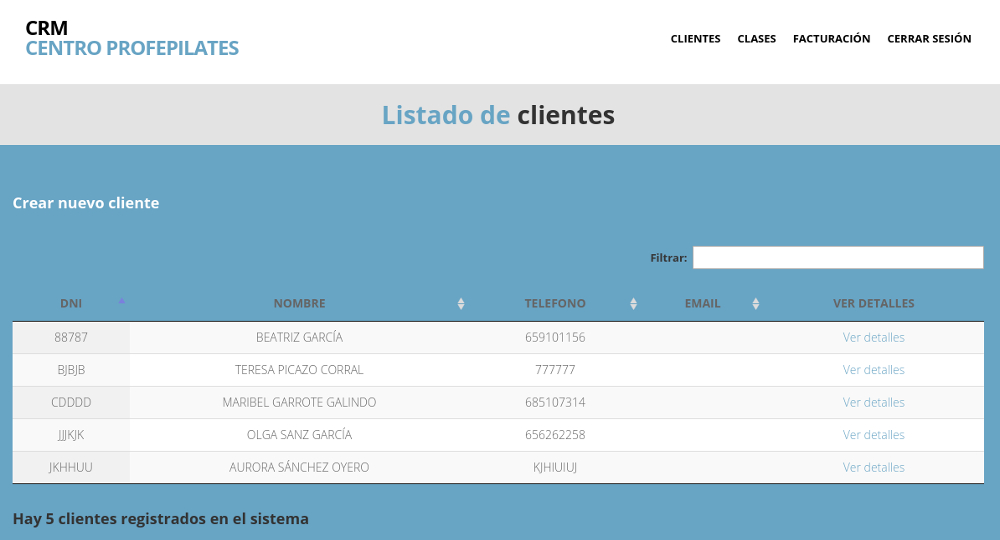 Gestión interna de una escuela de danza y pilates en Madrid (España).La aplicación se usa para la gestión interna de: