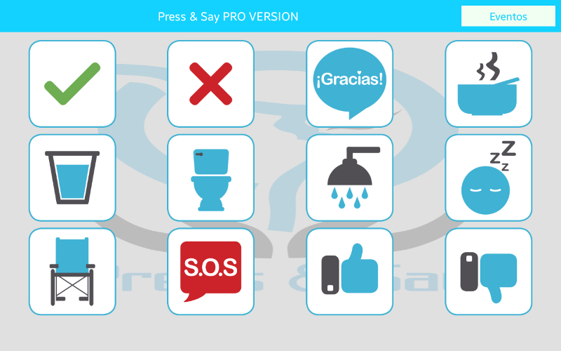 Herramienta de apoyo a personas con problemas comunicativos para integrar en centros de ayuda. Dispone de versión táctil o versión con teclado externo, ambas para tablets Android. Las imágenes y sonidos son fácilmente editables para adaptar la app a pacientes de un tipo concreto. Proyecto realizado para una asociación situada en Santiago (Chile).| Url | www.pressandsay.com |