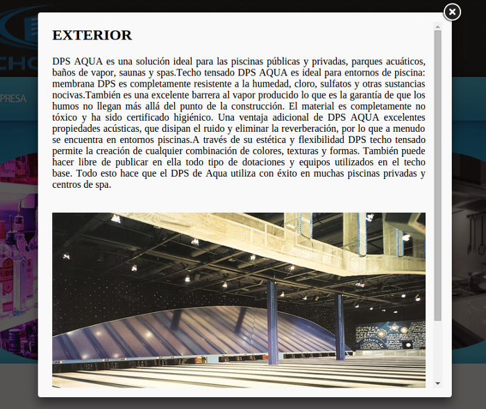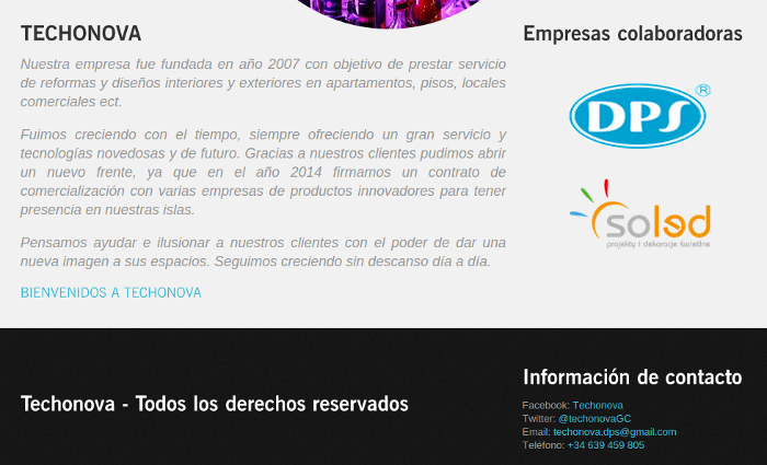Techonova Web para empresa de techos en Gran Canarias (España) Tecnologías HTML5, CSS3, PHP, MySQL, jQuery Plugins Fancybox